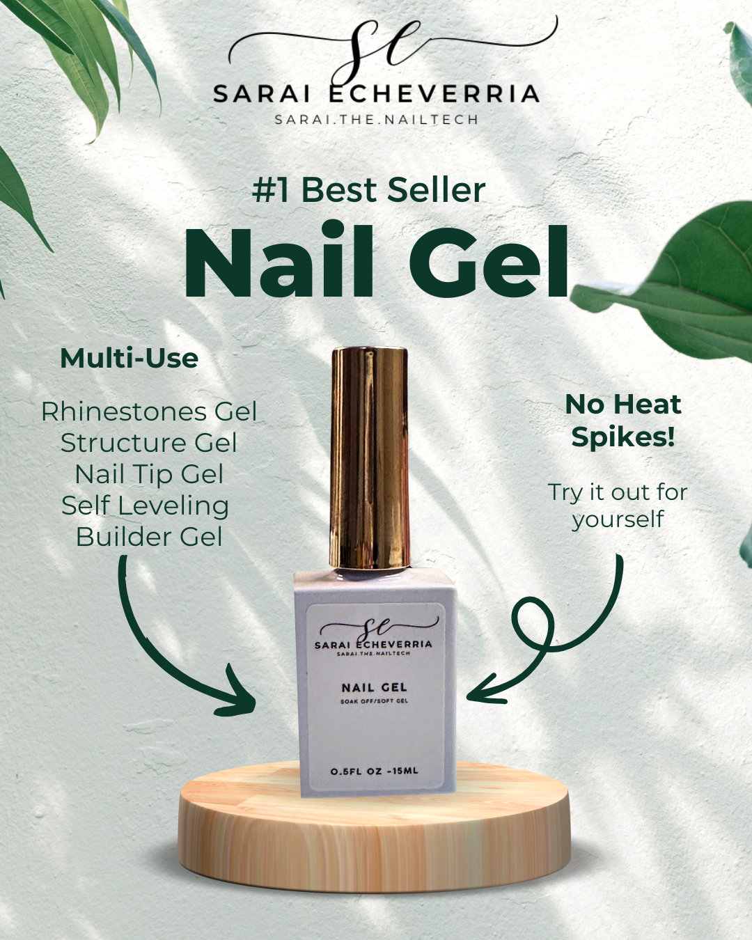 Sarai.the.Nailtech presents a nail gel glue with no heat spikes! This formula will guarantee long lasting set of Gel-x nails. This product can be used for the following services: