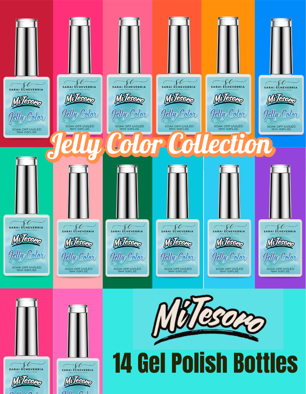 This amazing collection is dedicated to Sarai the Nailtech’s son. This is why it makes it so special. We have included 14 jelly colors that are so beautiful and vibrant. All colors were named by something my nephew loves.